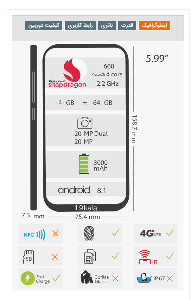 در قسمت اینفوگرافی شما مشخصات فنی یک محصول را مشاهده کرده و می توانید آنها را با هم مقایسه کنید.
