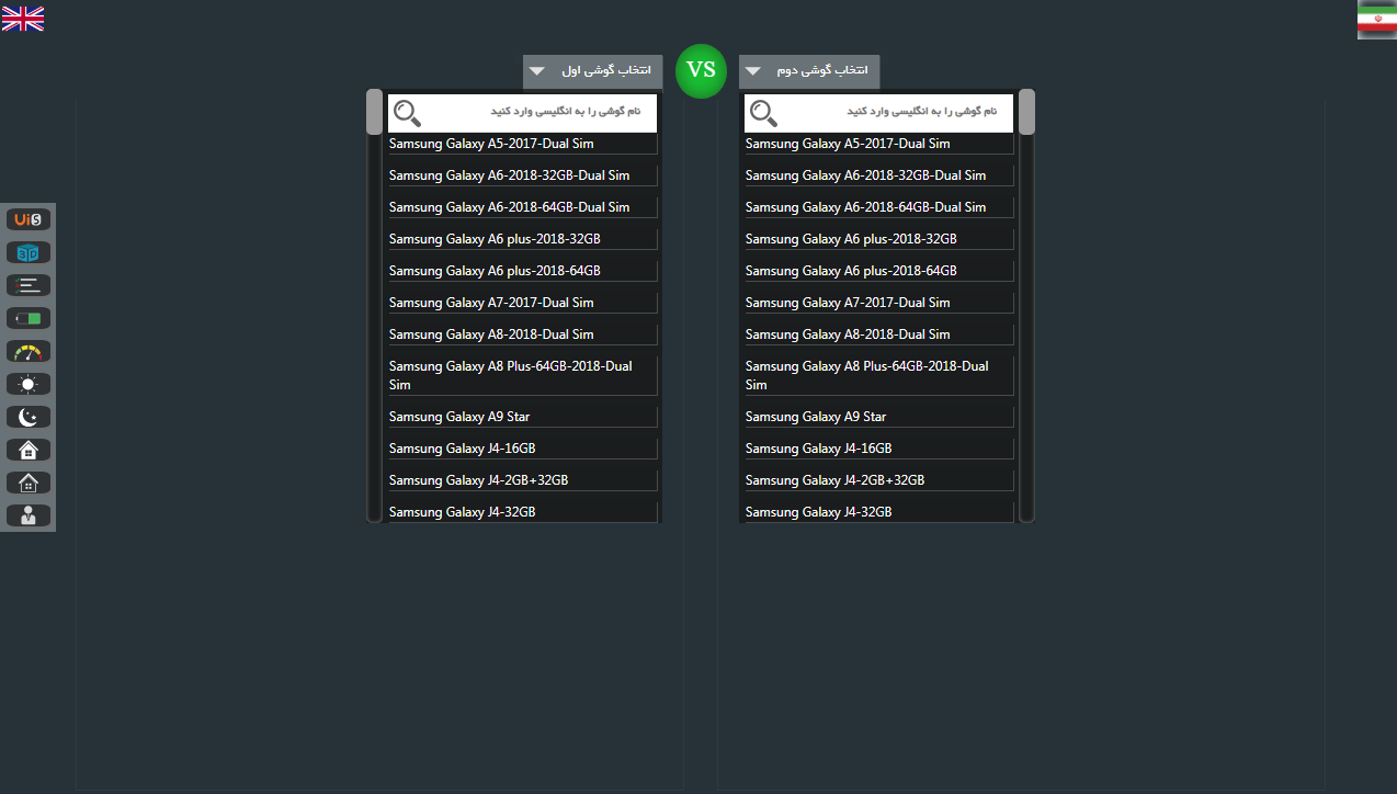 خاطر نشان می شود که این ابزار منحصر به فرد به صورت دو زبانه طراحی شده و هم می توانید هر مدل را به صورت جداگانه در صفحه مخصوص به خود مشاهده کرده و هم در پنل مقایسه گوشی را با هر مدلی را که مد نظر دارید مقایسه کنید و خرید گوشی موفقی را داشته باشید.