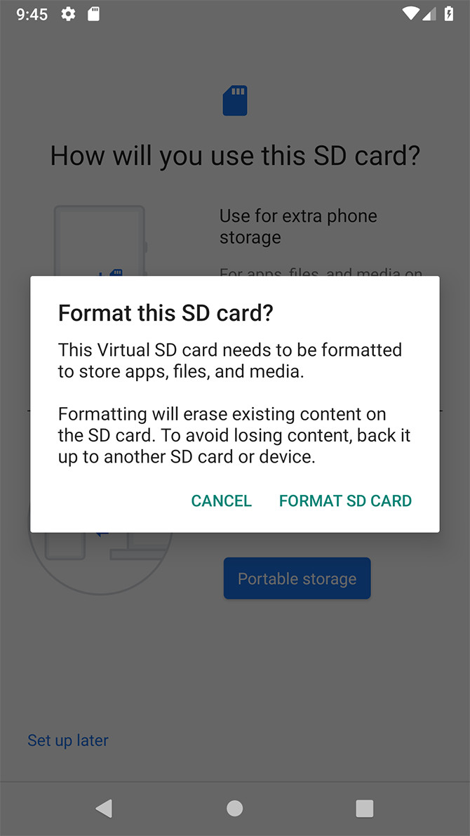 این ویژگی Adoptable Storage نام دارد. در این حالت میبایست کارت خود را برای همیشه در گوشی موبایل خود نگه دارید. کارت نیز رمزگذاری میشود، بنابراین نمیتوانید آن را در دستگاه دیگری قرار دهید تا دادهها را کپی کند.