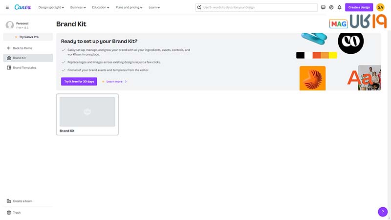 - در صفحه جدید، روی کادر Brand Kit ضربه بزنید.