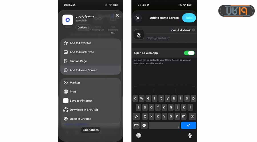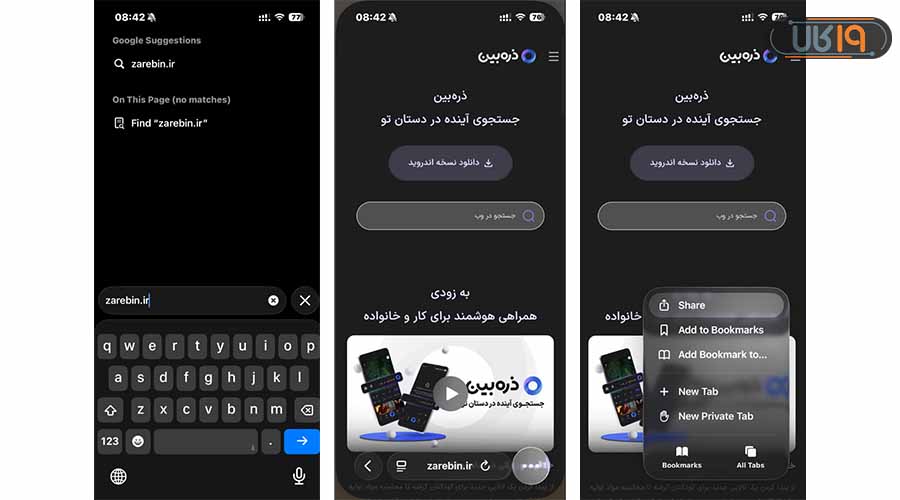 نصب نسخه وب مرورگر ذرهبین در آیفون