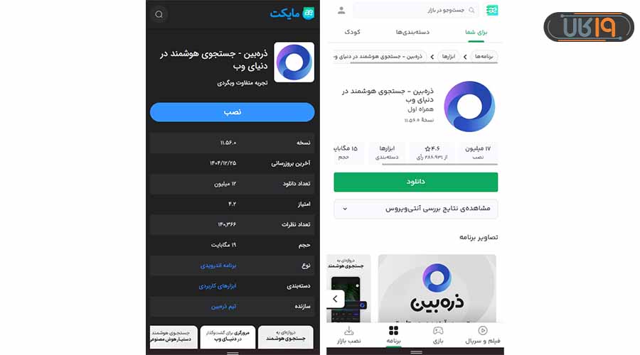 بله. کاربران اندروید میتوانند مرورگر ذرهبین را از طریق فروشگاههای برنامه داخلی مانند مایکت یا بازار نصب کنند. همچنین در برخی موارد امکان دانلود فایل APK از سایت رسمی نیز وجود دارد.