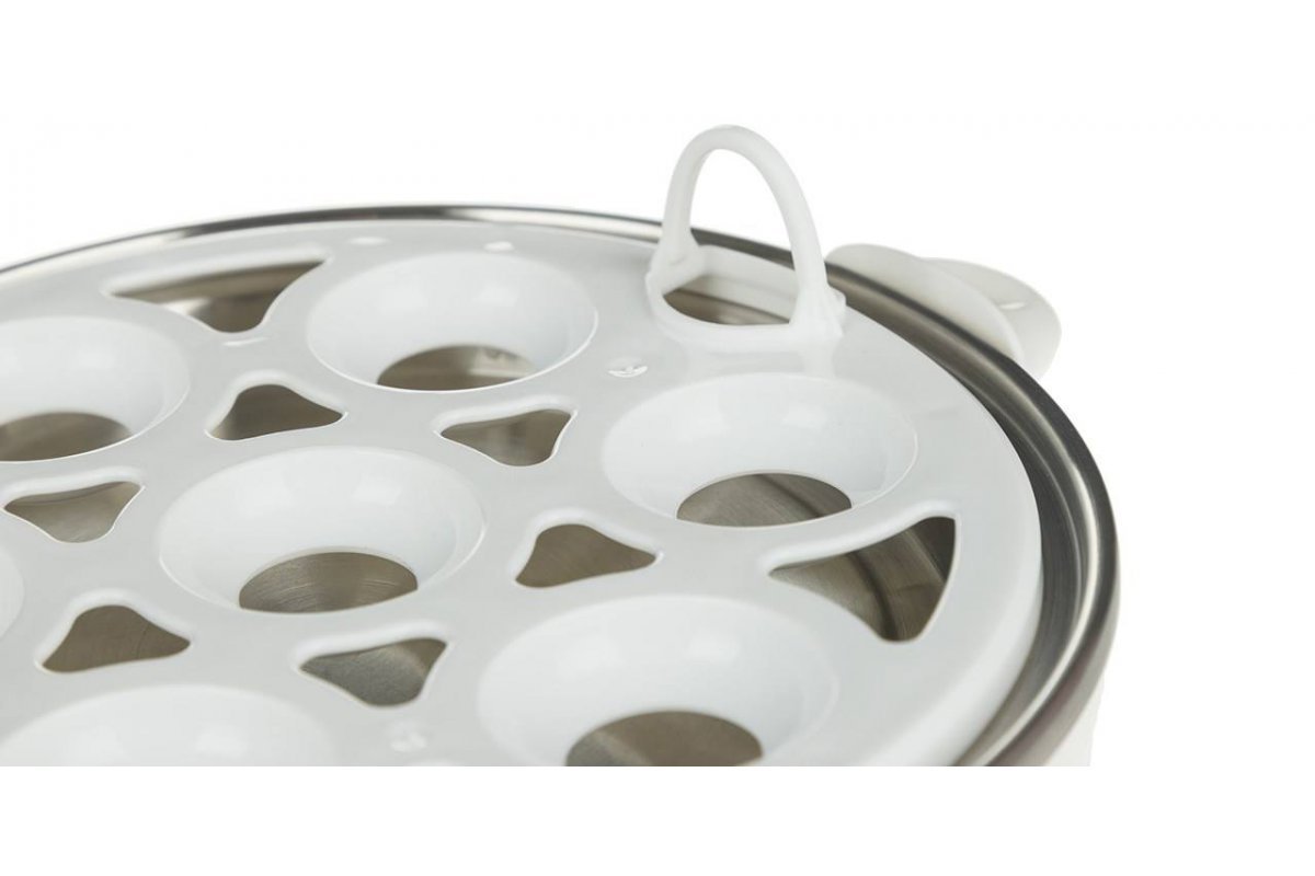 - برای آماده نمودن صبحانه 7 نفره کافیست به همین تعداد تخم مرغ را در دستگاه بچینید و با تنظیم آن روی عسلی یا آب پز در در کمترین زمان آماده شوند. علاوه بر این یک ظرف نیز برای ریختن تخممرغهای شکسته و نیمرو کردن رژیمی فراهم کرده است.