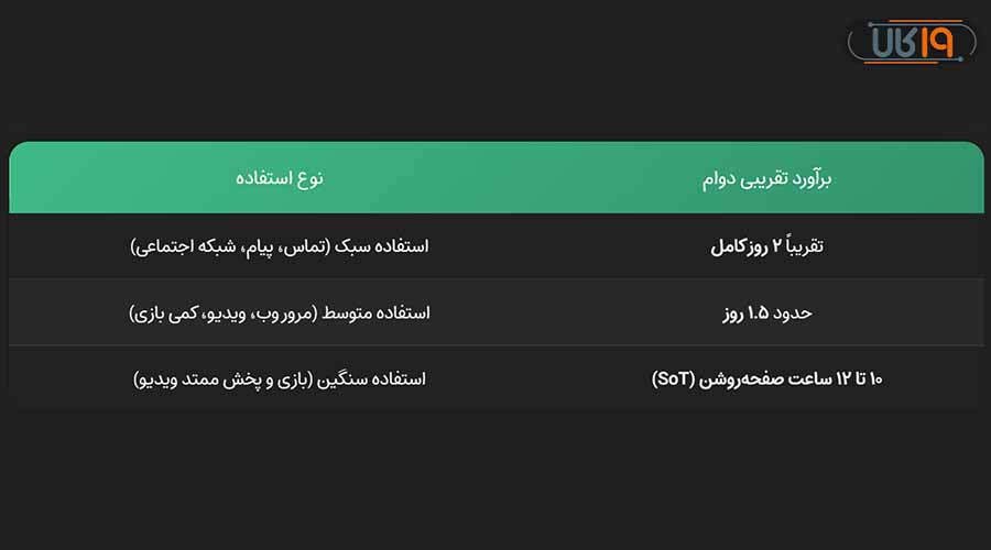 ترکیب باتری 6000mAh با سختافزار کممصرف و رزولوشن HD تقریباً مشخص میکند که هدف اصلی سازنده دوام شارژ بالا بوده است. در استفاده واقعی احتمالاً این نتایج را میشود دید: